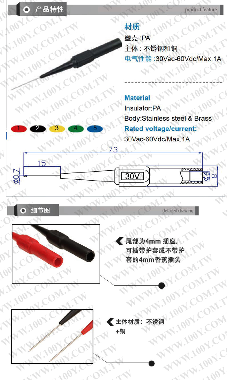 Amass 組合式安規測棒-針型不鏽鋼測試探針