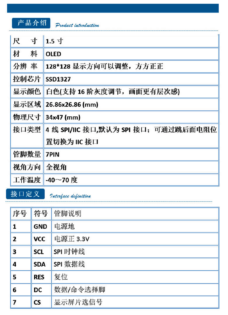 1.5寸-OLED-7SPI-白色