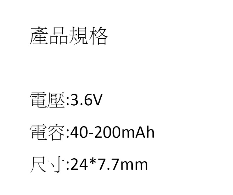 3.6V/40-200mAh充電鋰電池