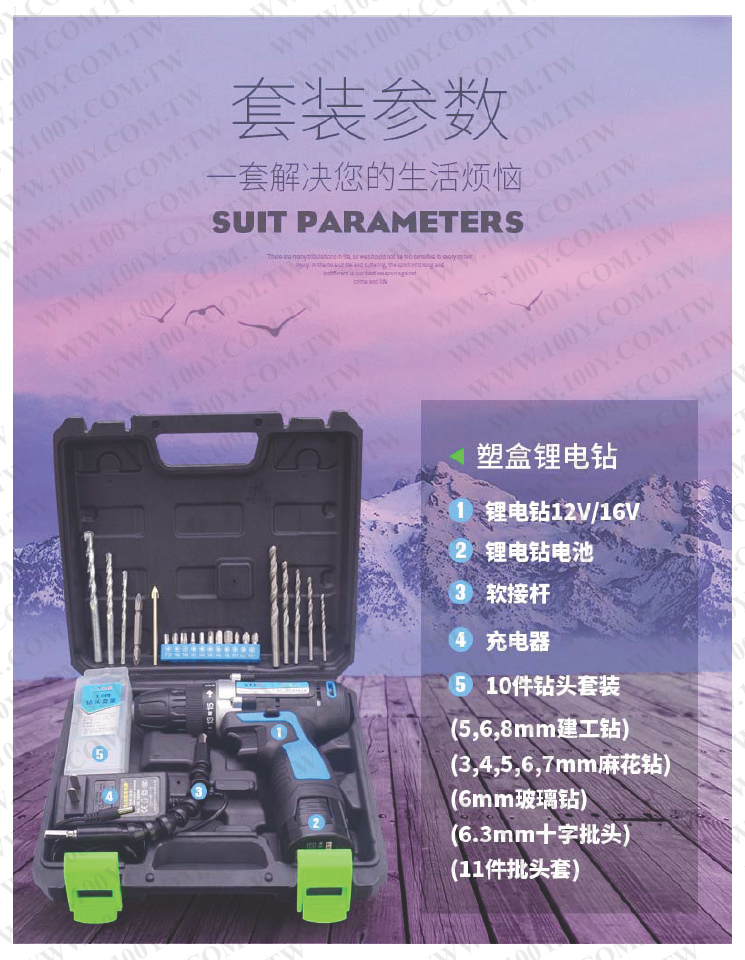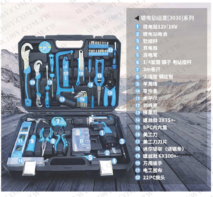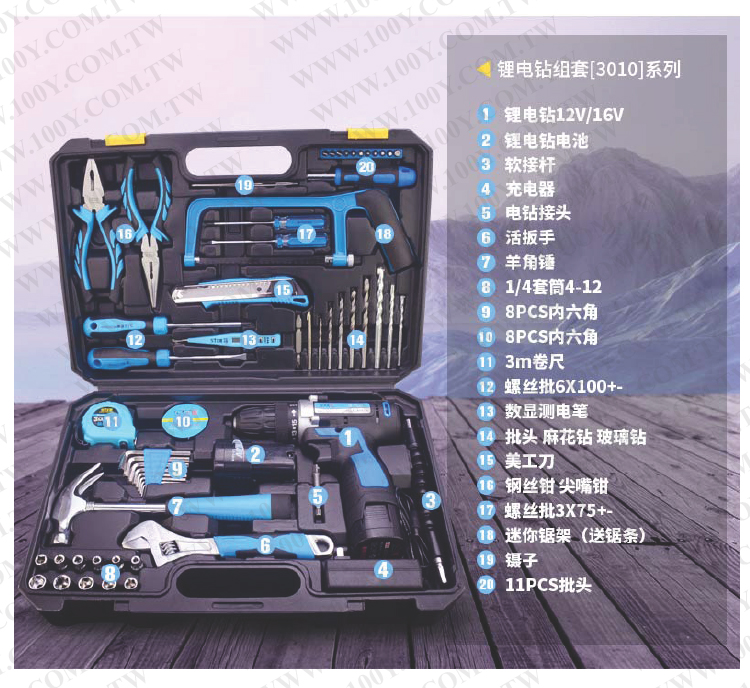 SJ-3030-12V電鑽- 1電1充+大組套