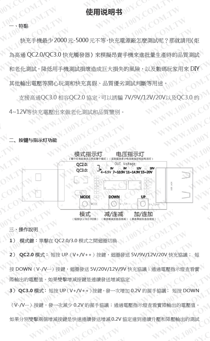 QC2.0 快充觸發器測試檢測器