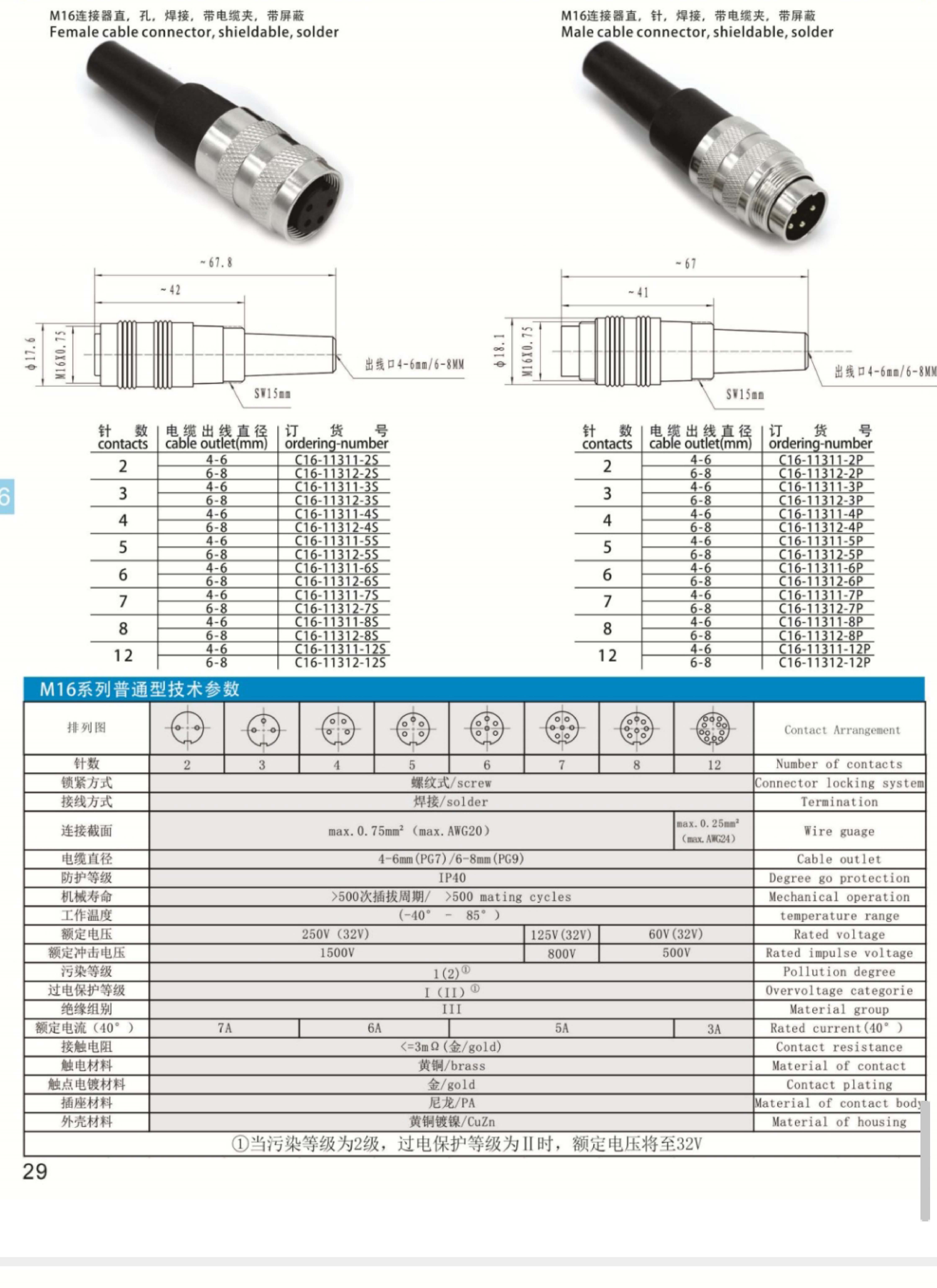 M16-5P母頭傳感器防水連接器 C16-11312-5S