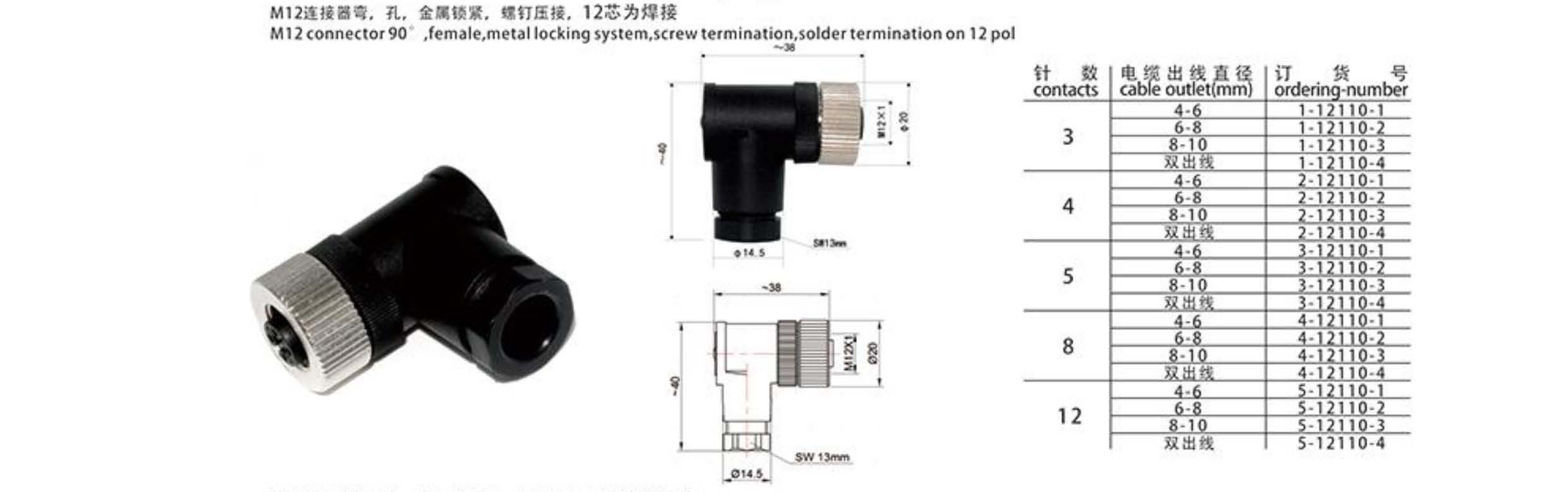 M12-8P 90度彎母頭連接器