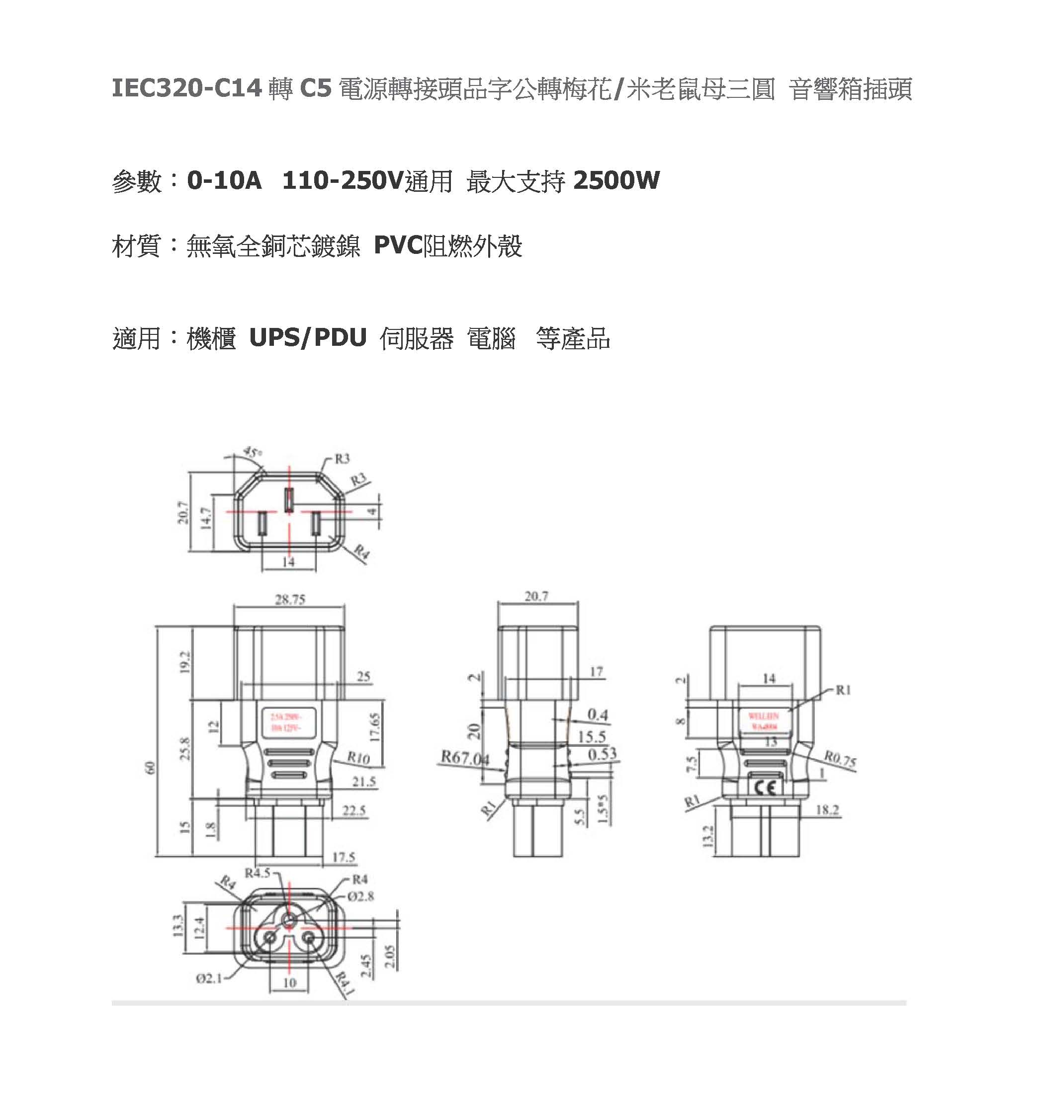 C14轉C5頭 梅花頭轉品字插頭