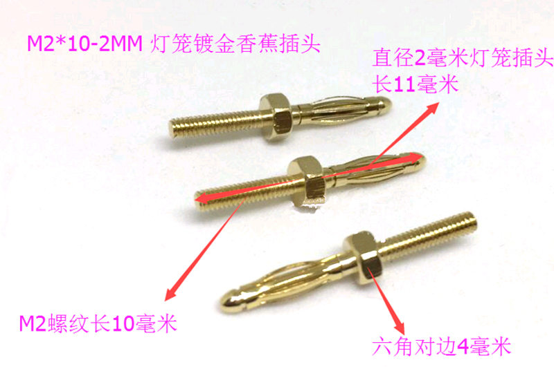 裸露香蕉插頭-2mm/M2*10-燈籠型六角鍍金