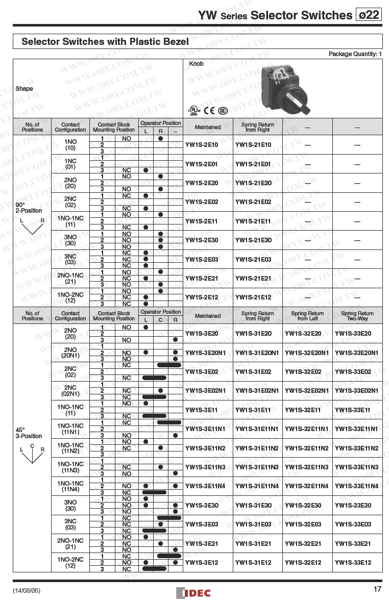 Φ22 二位選擇開關 1NO 標準旋鈕型 90°