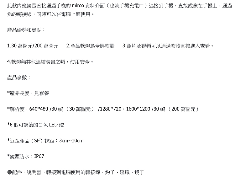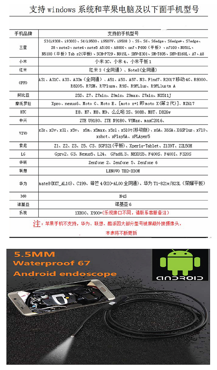 5.5mm-30萬-安卓手機內窺鏡-2M軟線