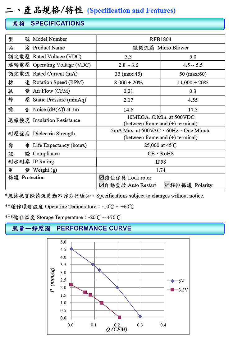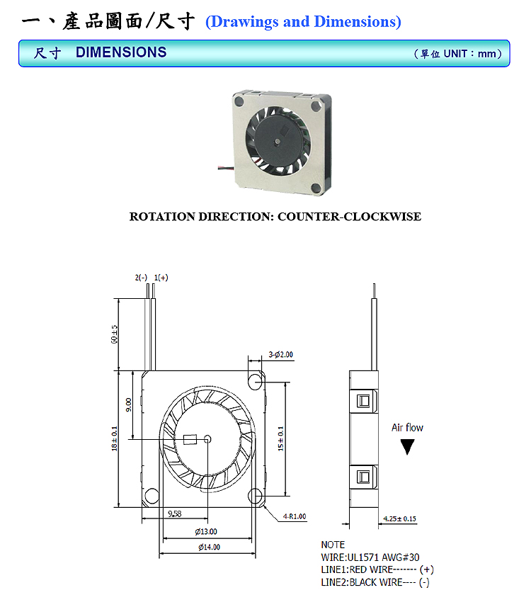 微型側流風扇 DC5V 50mA(max:60)18*18*4.25mm