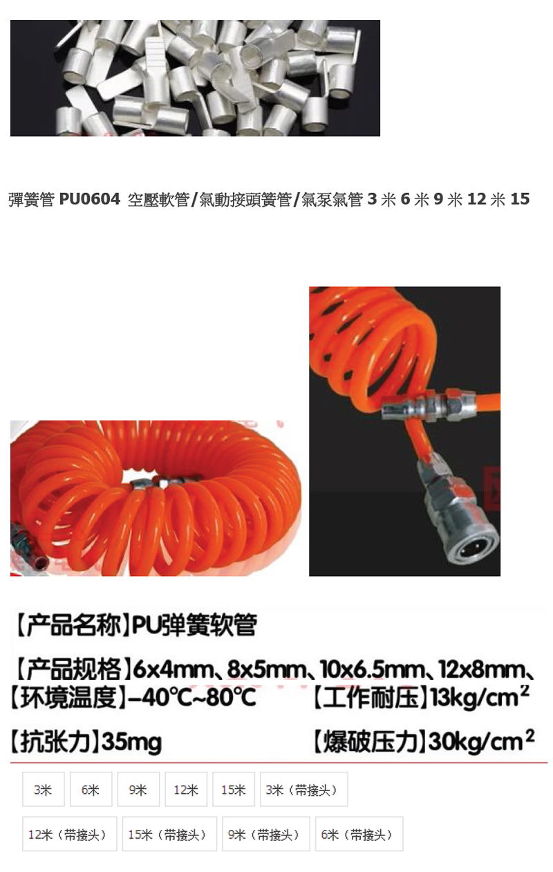 彈簧管PU0805 空壓軟管/氣動接頭簧管/氣泵氣管3米