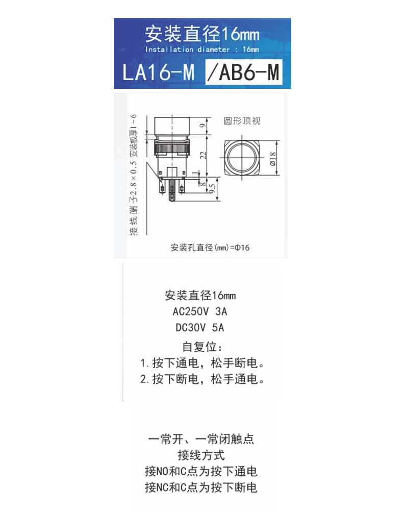 LA16-11M-HBZS1-A 16mm-綠色-銀觸點