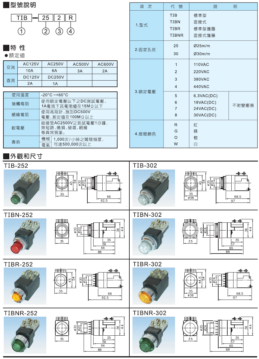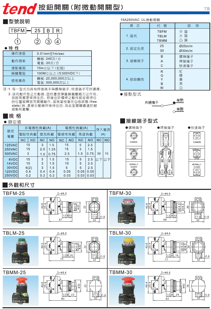 | 12380 | TBF-251A-G | 綠平頭∮25mm | 1a(NO) | 2 |