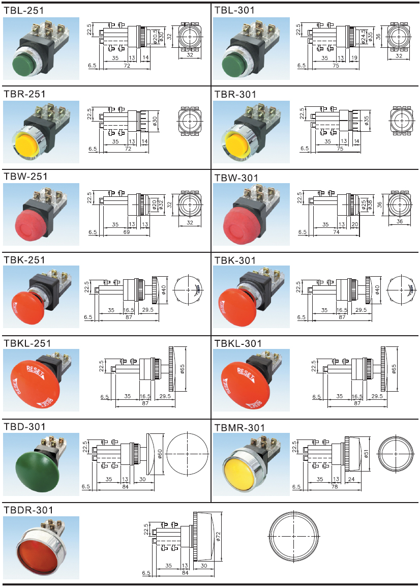 | 12429 | TBF-251-Y | 黃平頭∮25mm | 1a1b(NO-NC) | 4 |