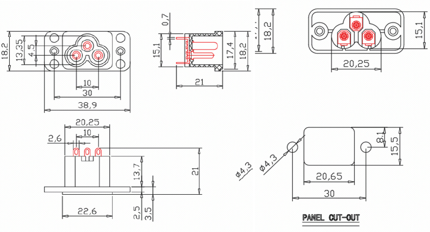 C14 電源插座帶保險絲插座帶耳朵10A/250V