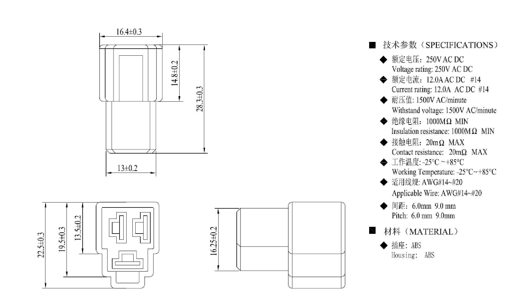(9.0/6.0mm) 6.3汽配 3P 針端子的外殼