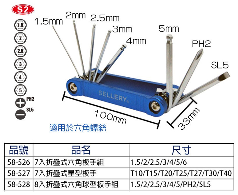 折疊式六角板手組-S2 (7支/組)
