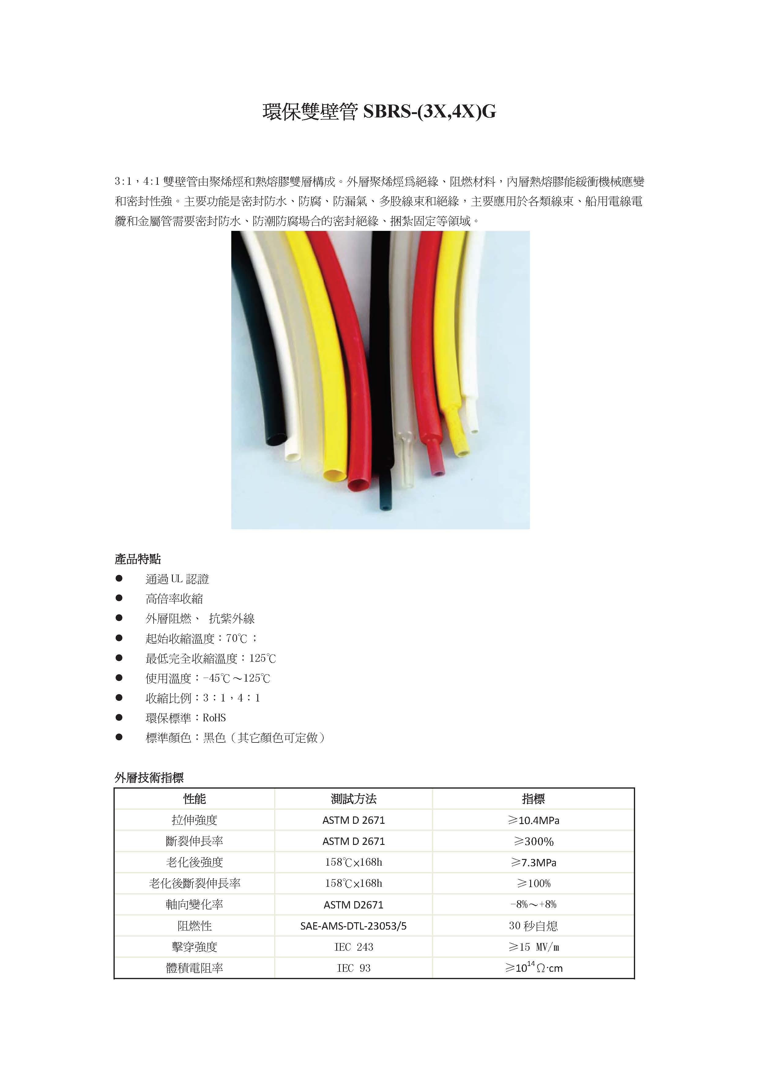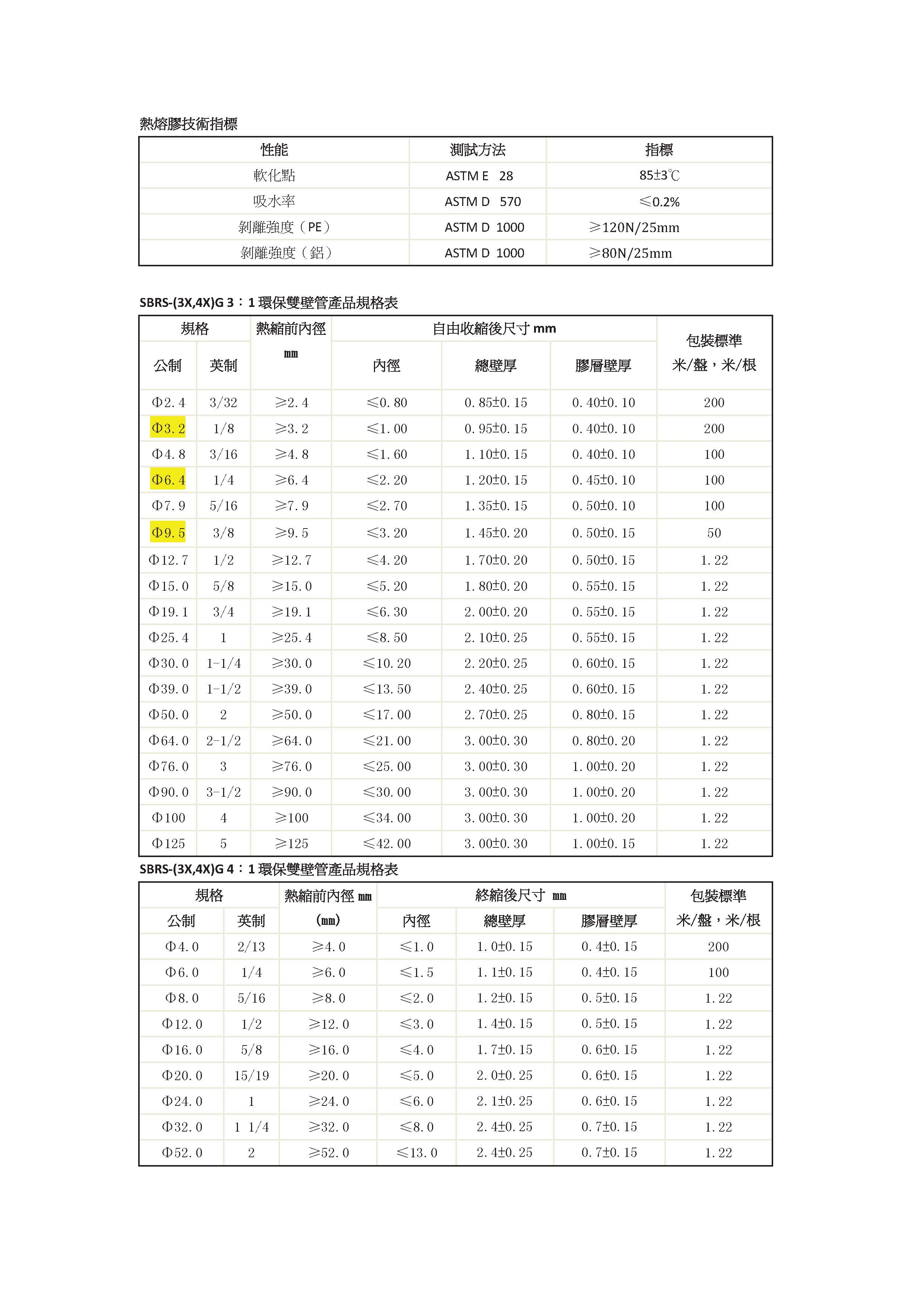 ψ2.4mm 3倍帶膠 雙壁熱縮套管 125℃