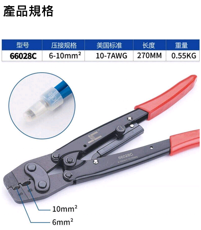 閉端端子壓接鉗 6-10mm2