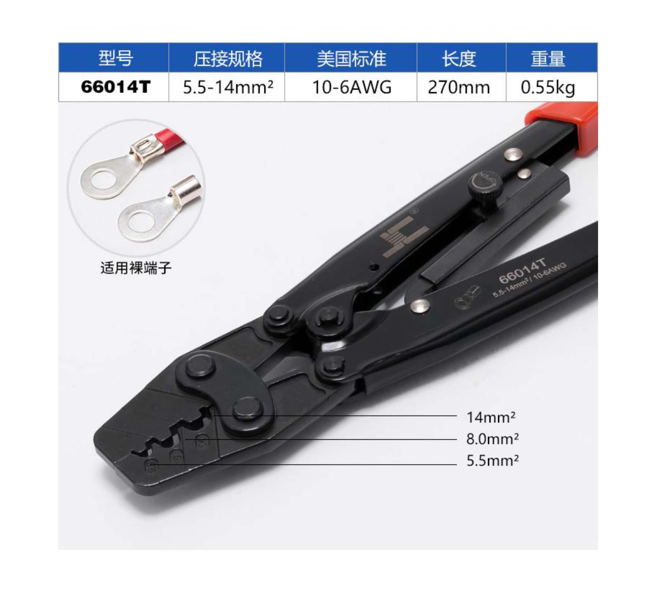 棘輪式裸端子壓線鉗 66014T