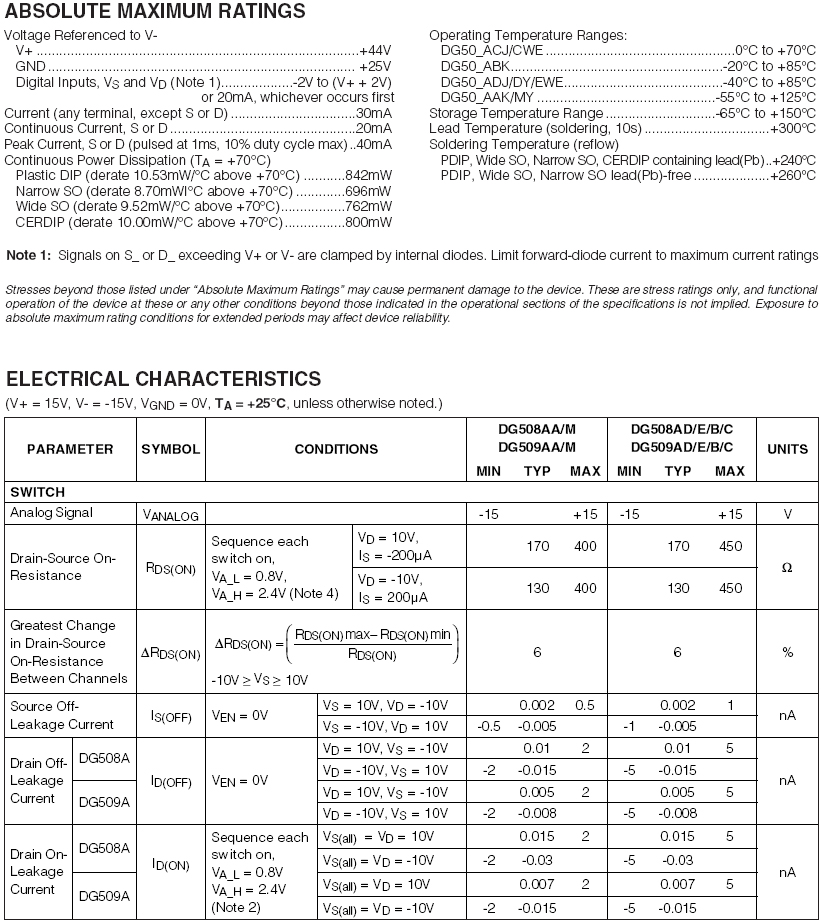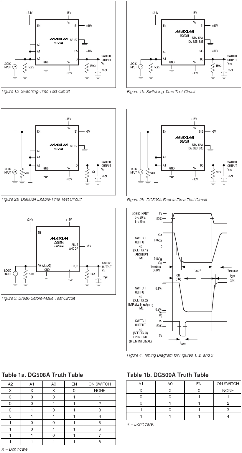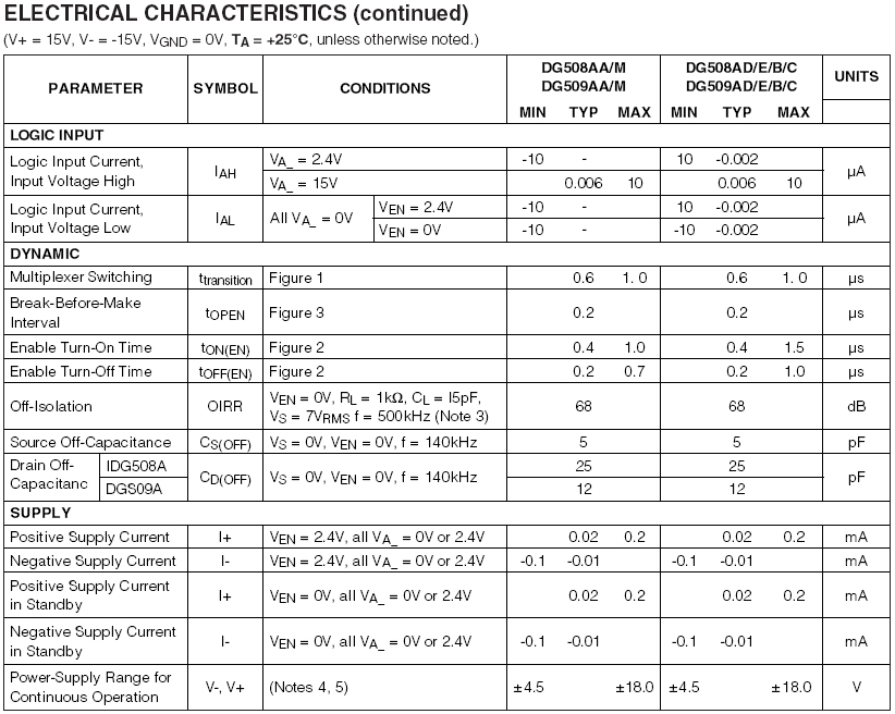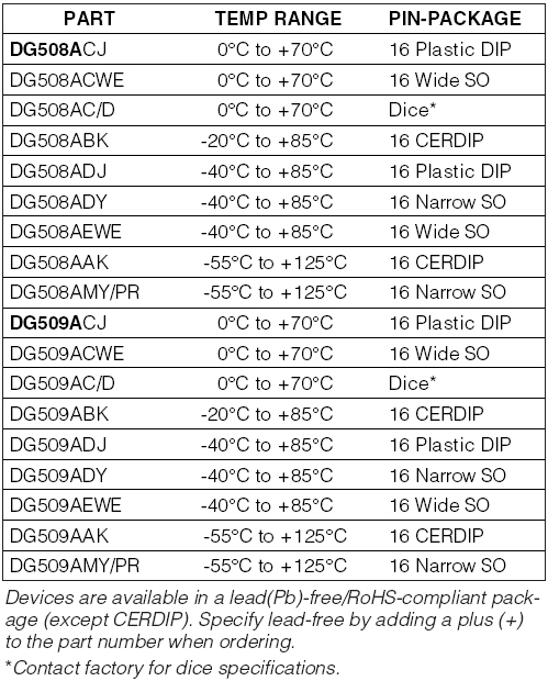 The DG508A/DG509A are plug-in upgrades for the industry-standard DG508A/DG509A, respectively. Maxim’s parts have faster enable switching times and significantly lower leakage currents. The DG508A/ DG509A also consume significantly lower power, making them ideal for portable equipment.