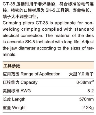 Y.O裸端子壓接鉗 8-38mm2 CT-38