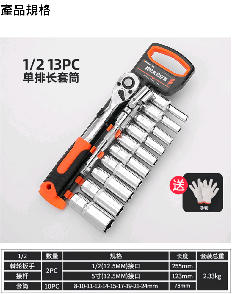 12件棘輪扳手套筒組