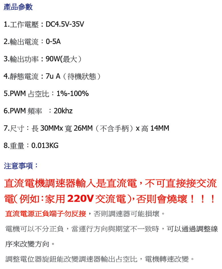 PWM直流電機調速器5-35V調速開關 5A LED調光器
