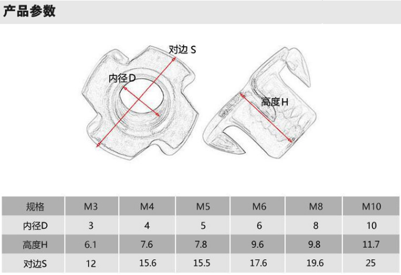 碳鋼-四爪螺母-M4