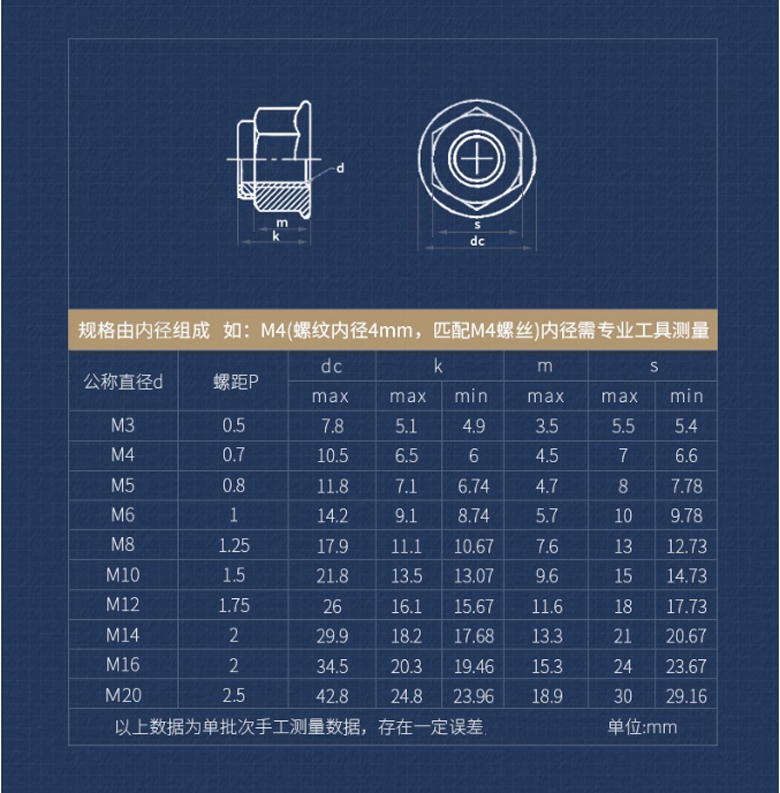 304-帶墊尼龍法蘭螺母-M5