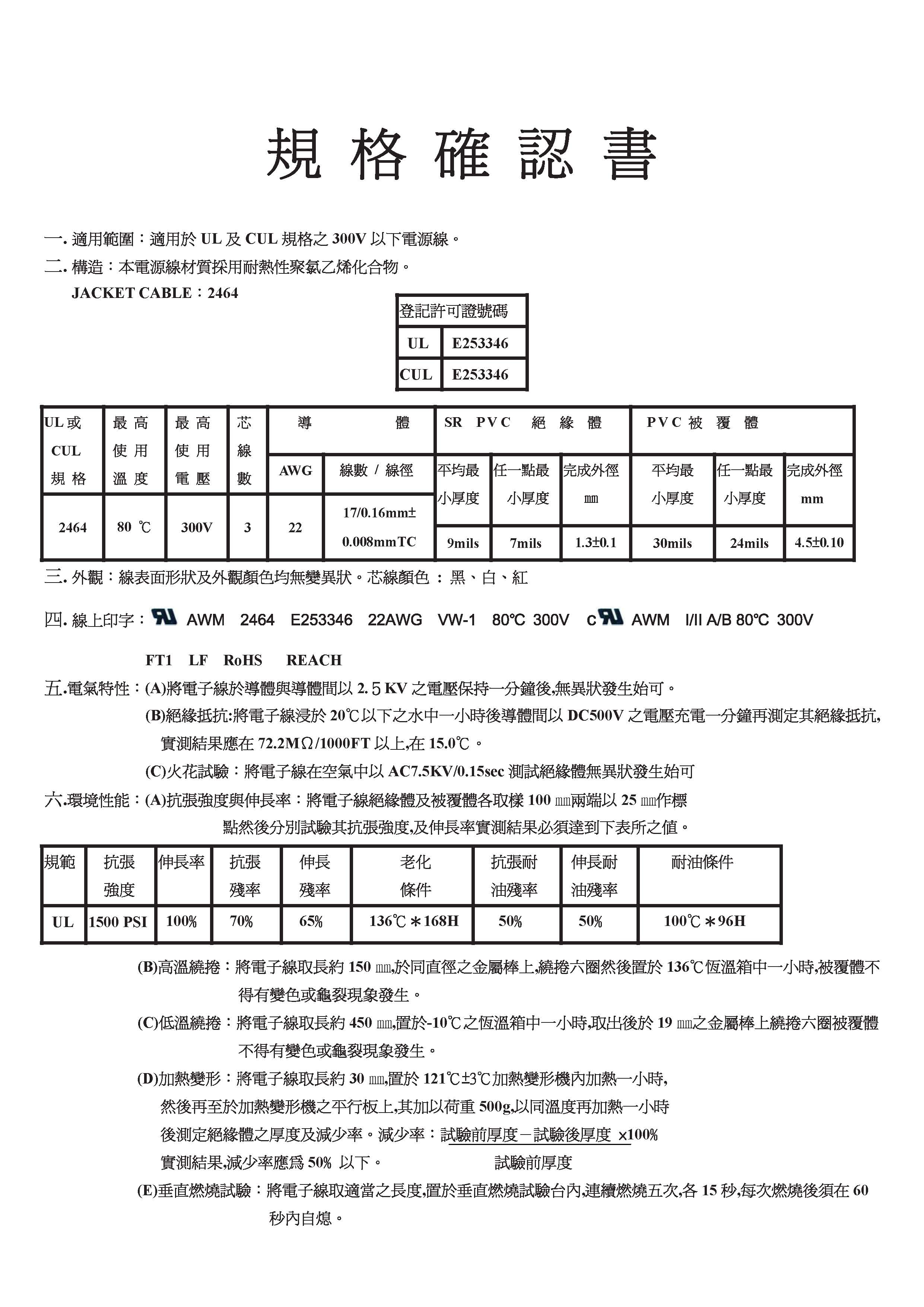 UL2464-22AWG-3C-無遮蔽黑色柔軟
