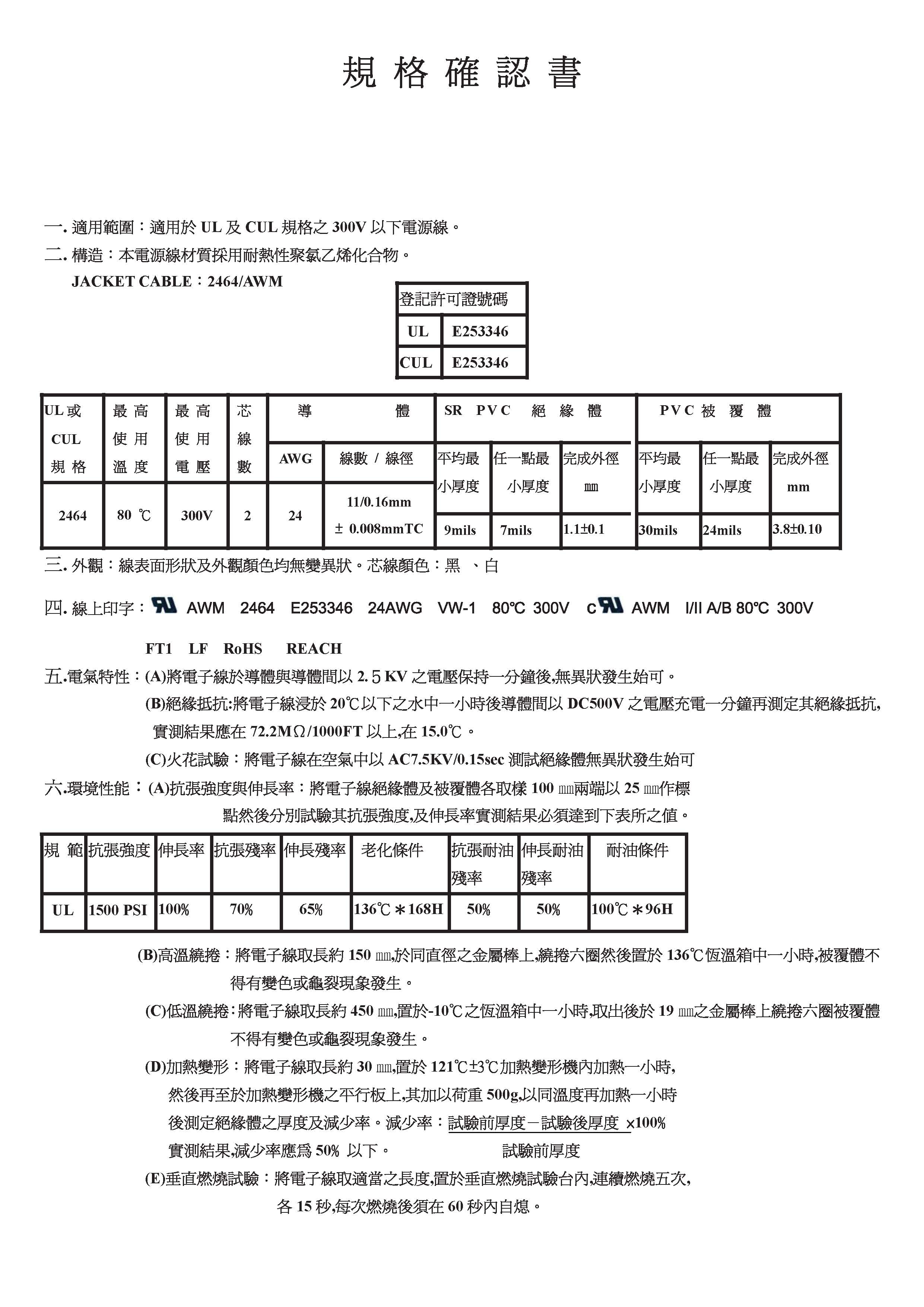 UL2464-24AWG-2C-無遮蔽黑色柔軟