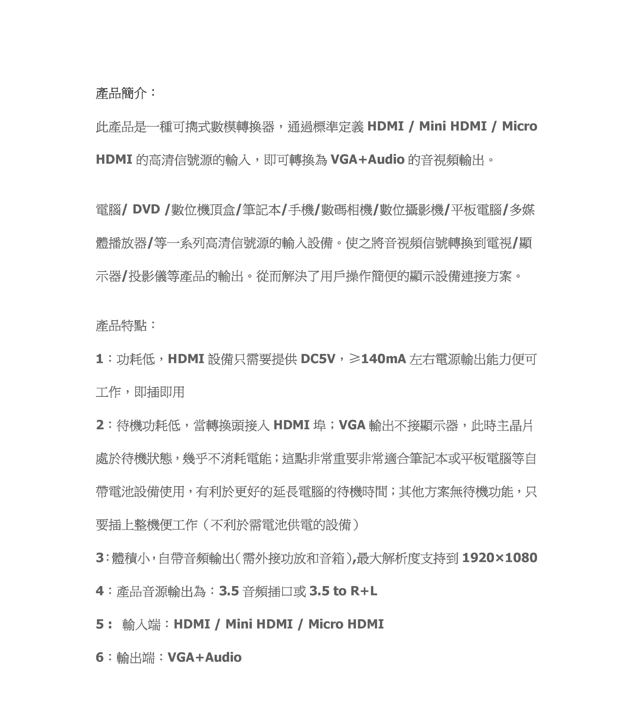 HDMI(M)-VGA(F)-轉接頭帶音頻-BK
