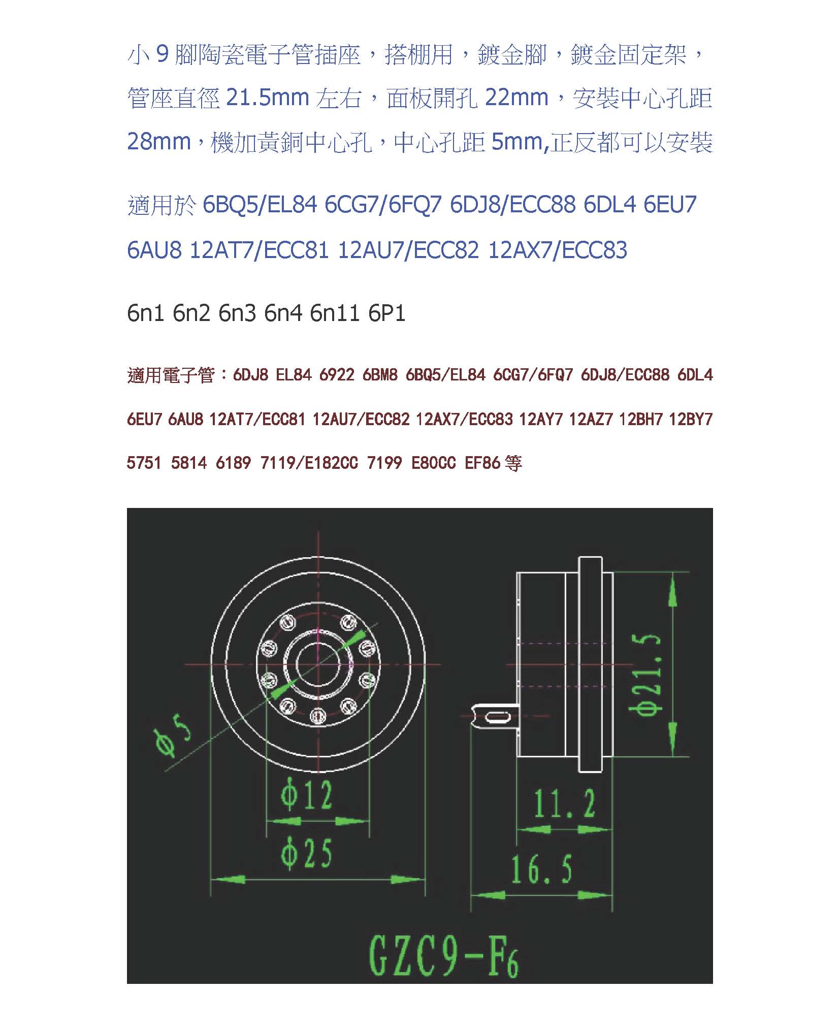 磷青銅鍍金小九腳管插座
