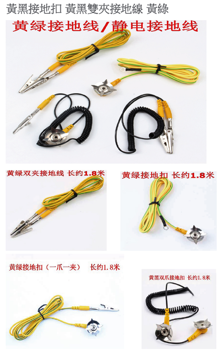黃綠接地線扣-端子+鱷魚夾-1.8M
