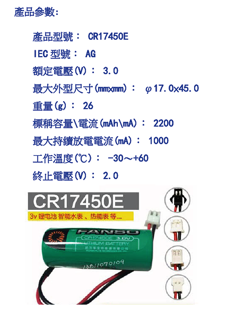 CR17450E+51005插頭鋰電池