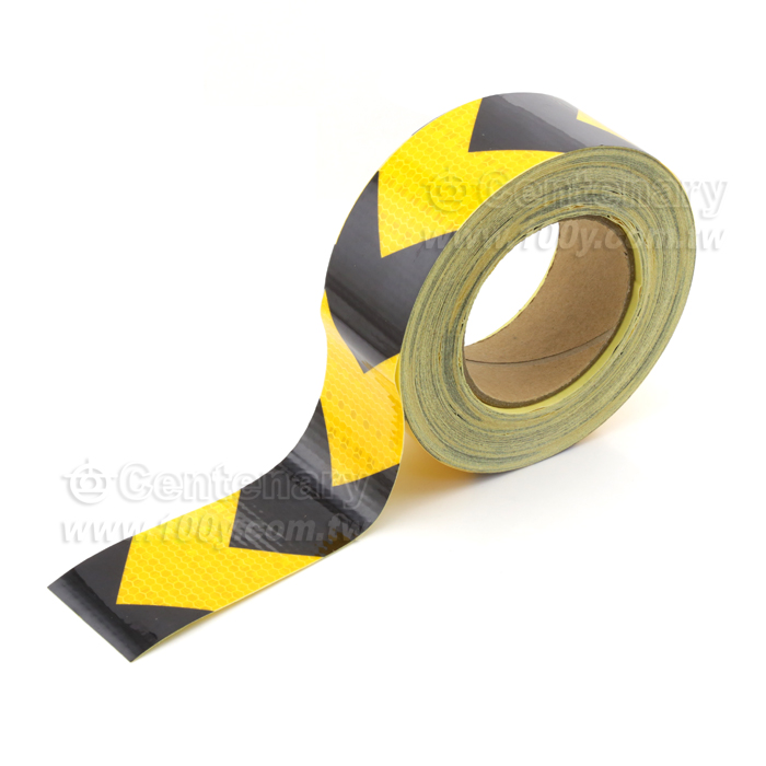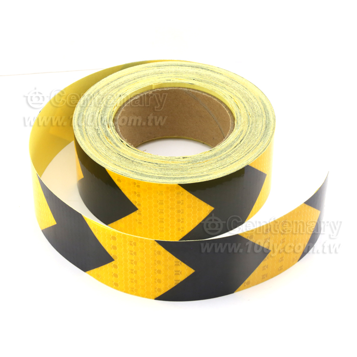 【晶鑽級】黃黑箭頭反光警示膠帶-5cm*25M
