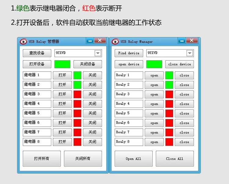 5. 4路、8路預留電源接口,連接電源後即使電腦關機或者USB從電腦拔出,繼電器同樣可以保持設置狀態。 1路和2路就沒有電源接口