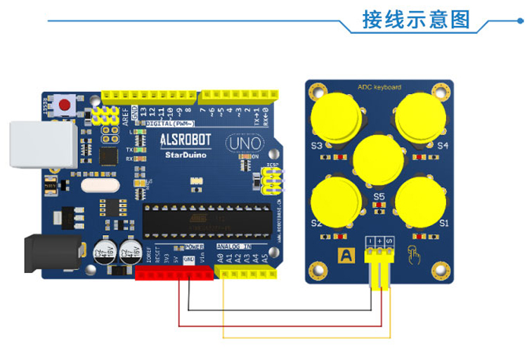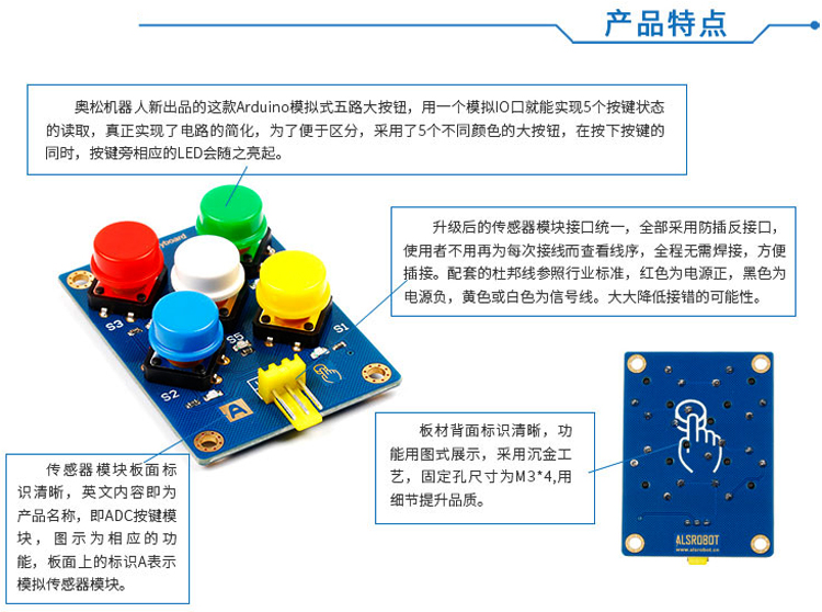 兼容Arduino 模擬式五路大按鈕模塊 ADkeyboard 按鍵模塊