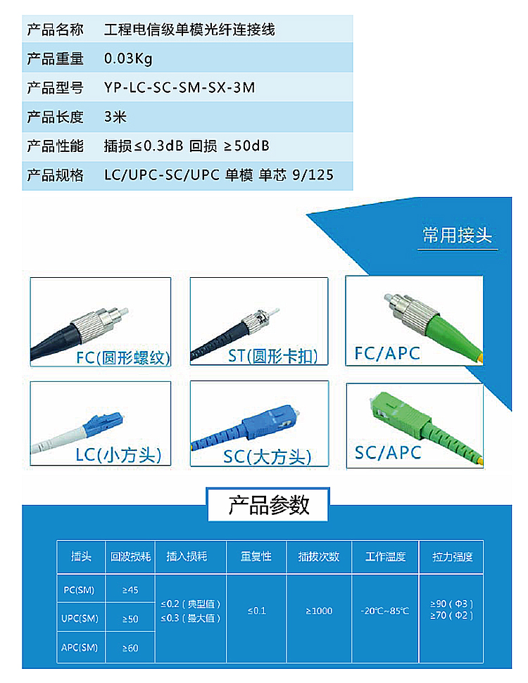 LC/UPC-SC/UPC 單模單芯 光纖跳線9/125um 1M