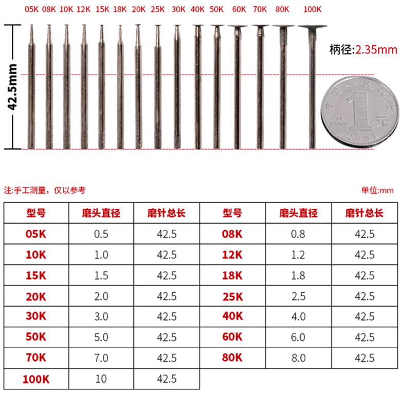 金鋼砂玉石雕磨針薄片-10K-1.0mm