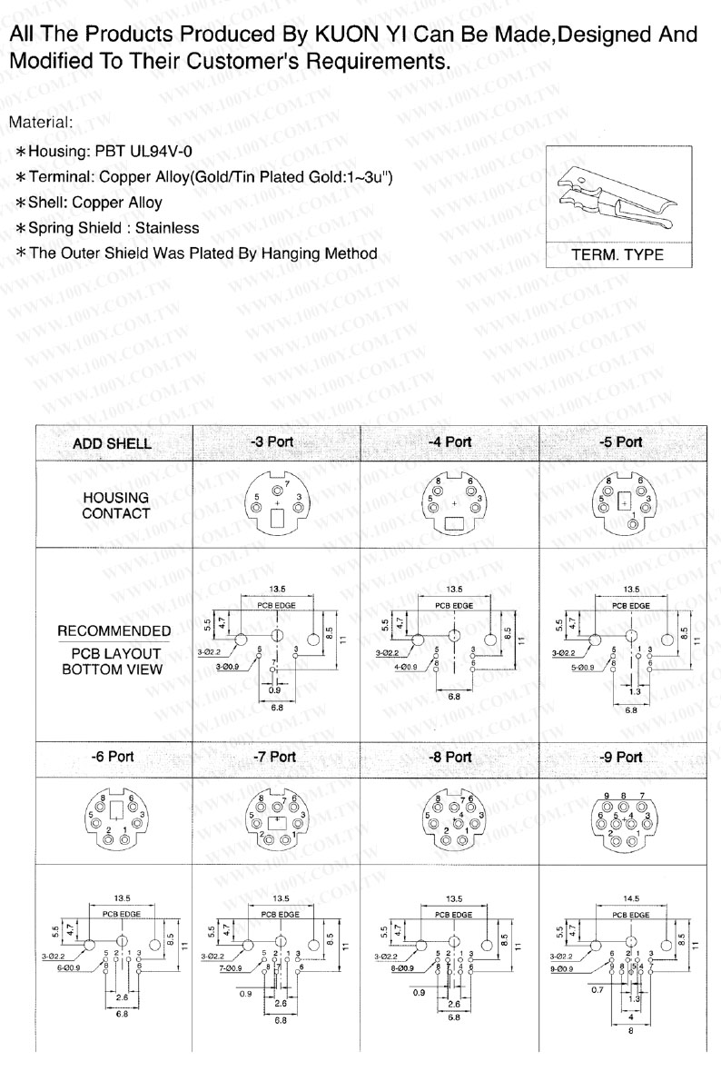 Mini-DIN 母座6P 黑色【無鉛】