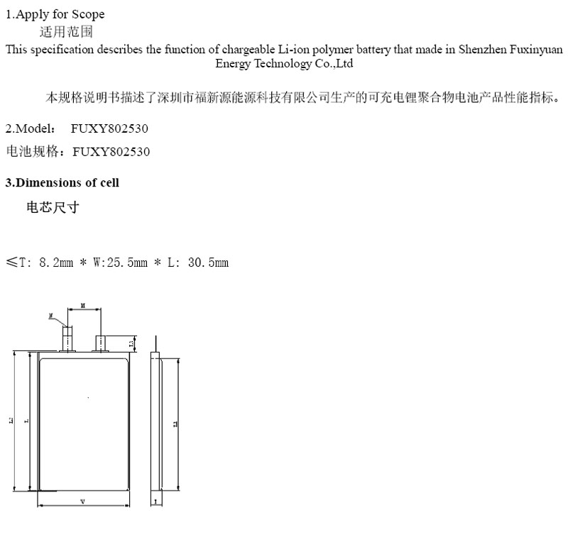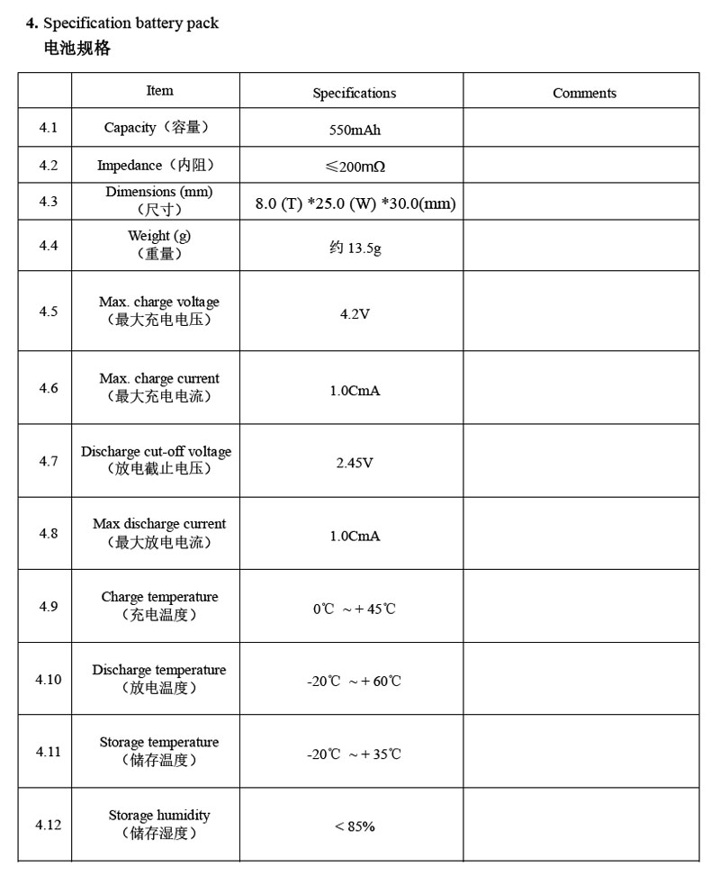 聚合物鋰充電電池(帶保護板) 550mAh/3.7V 25*30mm