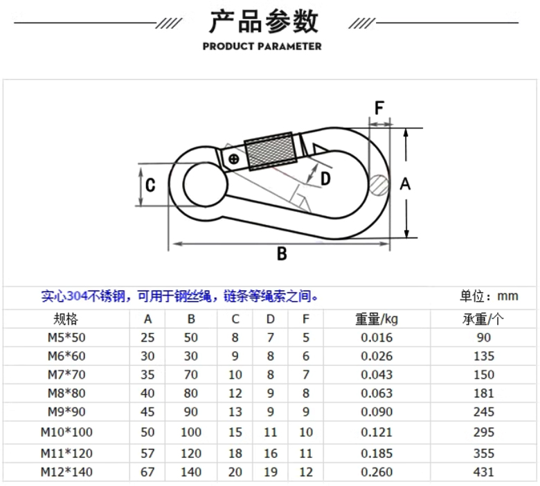 304彈簧扣-帶螺母-M5*50