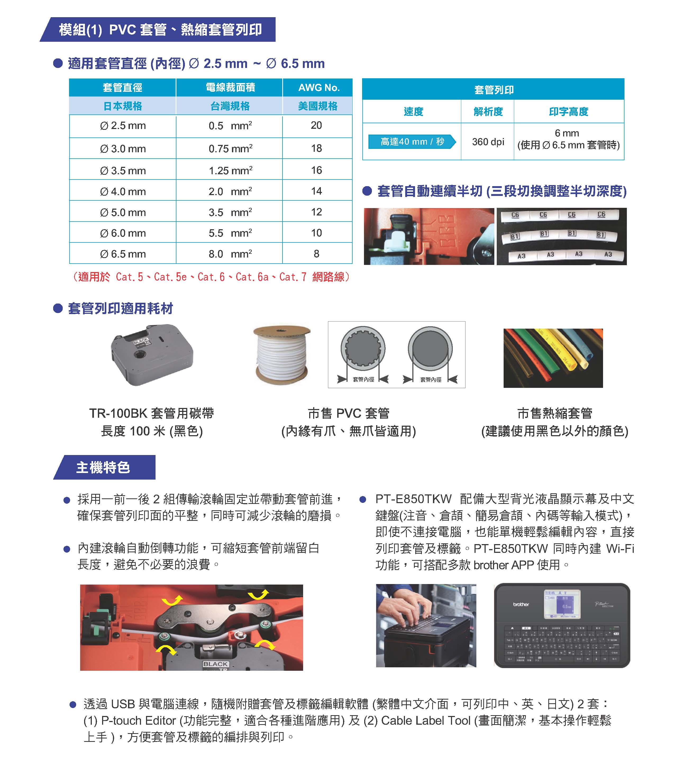 PT-E850TKW 標籤/套管 雙列印模組線號印字機