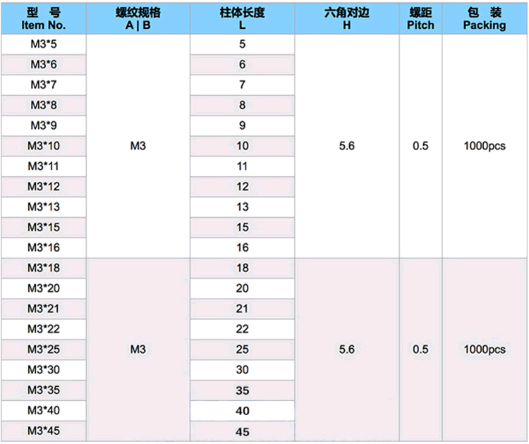 尼龍六角柱-F/F-M3*18-B