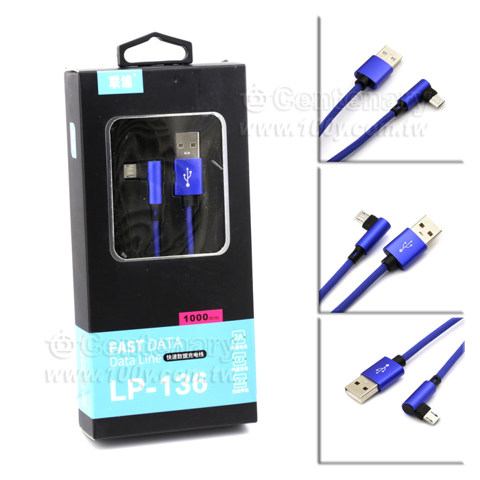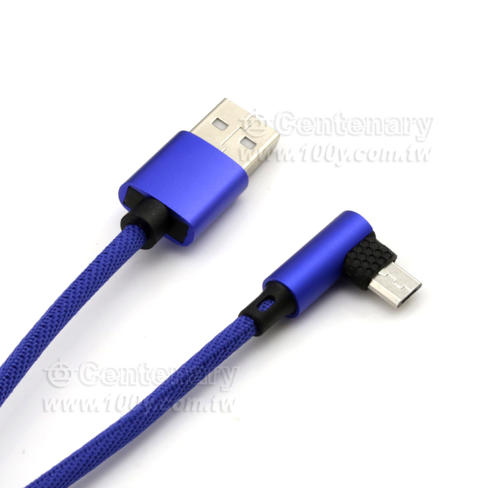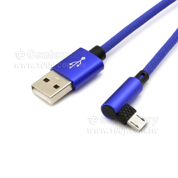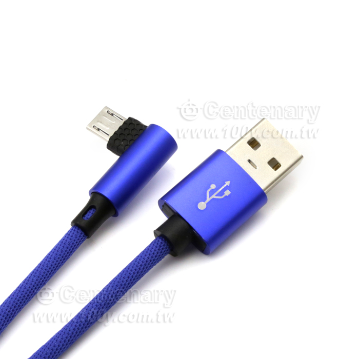 彎頭數據線 安卓Micro usb尼龍編制遊戲機充電 藍色-盒裝
