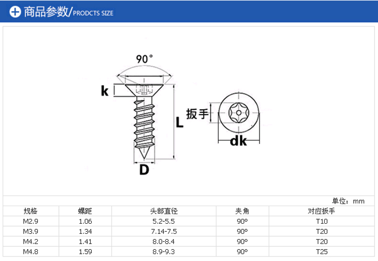 304不銹鋼平頭梅花帶柱自攻螺絲