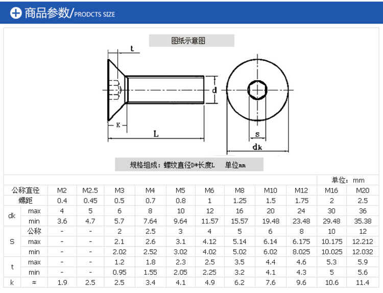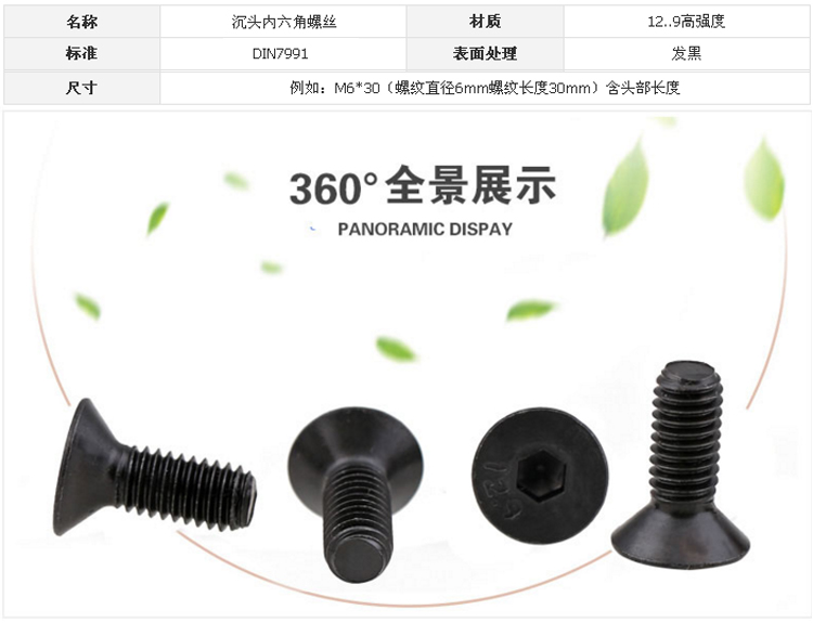 12.9級沉頭內六角螺絲