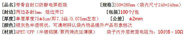 自封-防靜電夾鍊袋-帶骨- (250*260mm) 雙面15絲