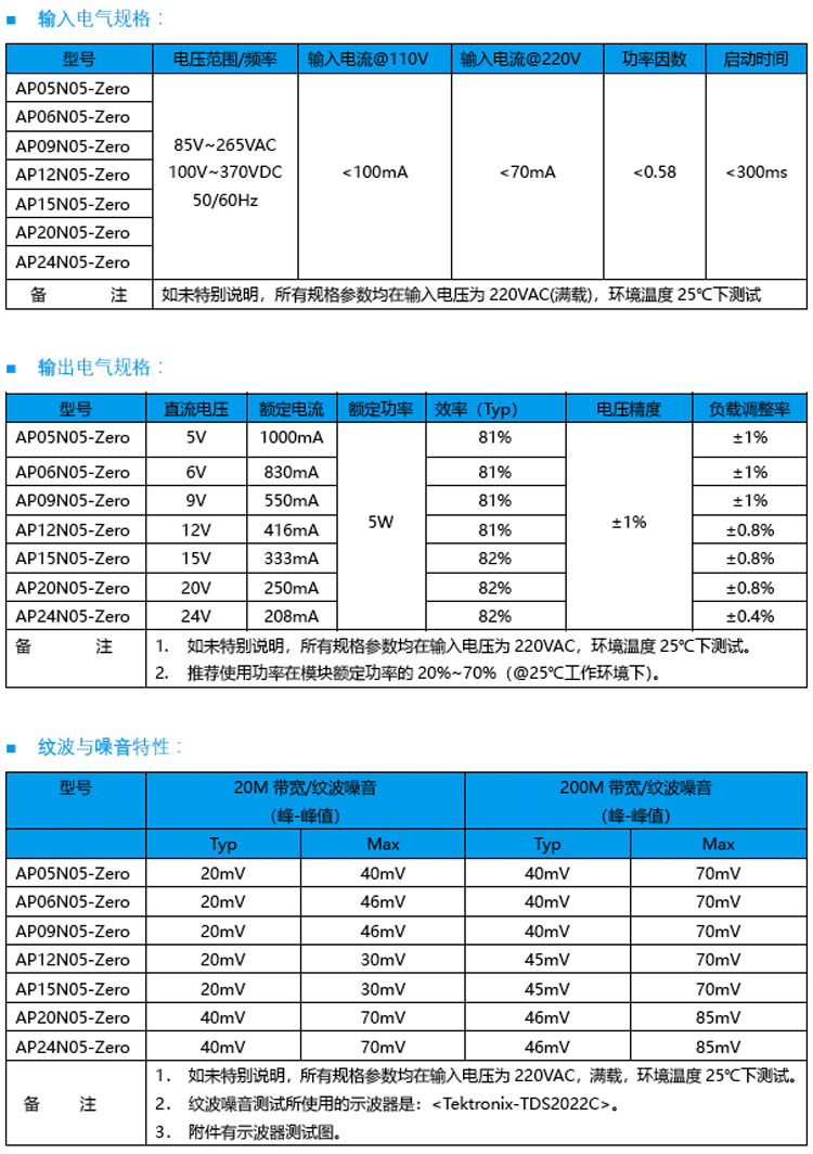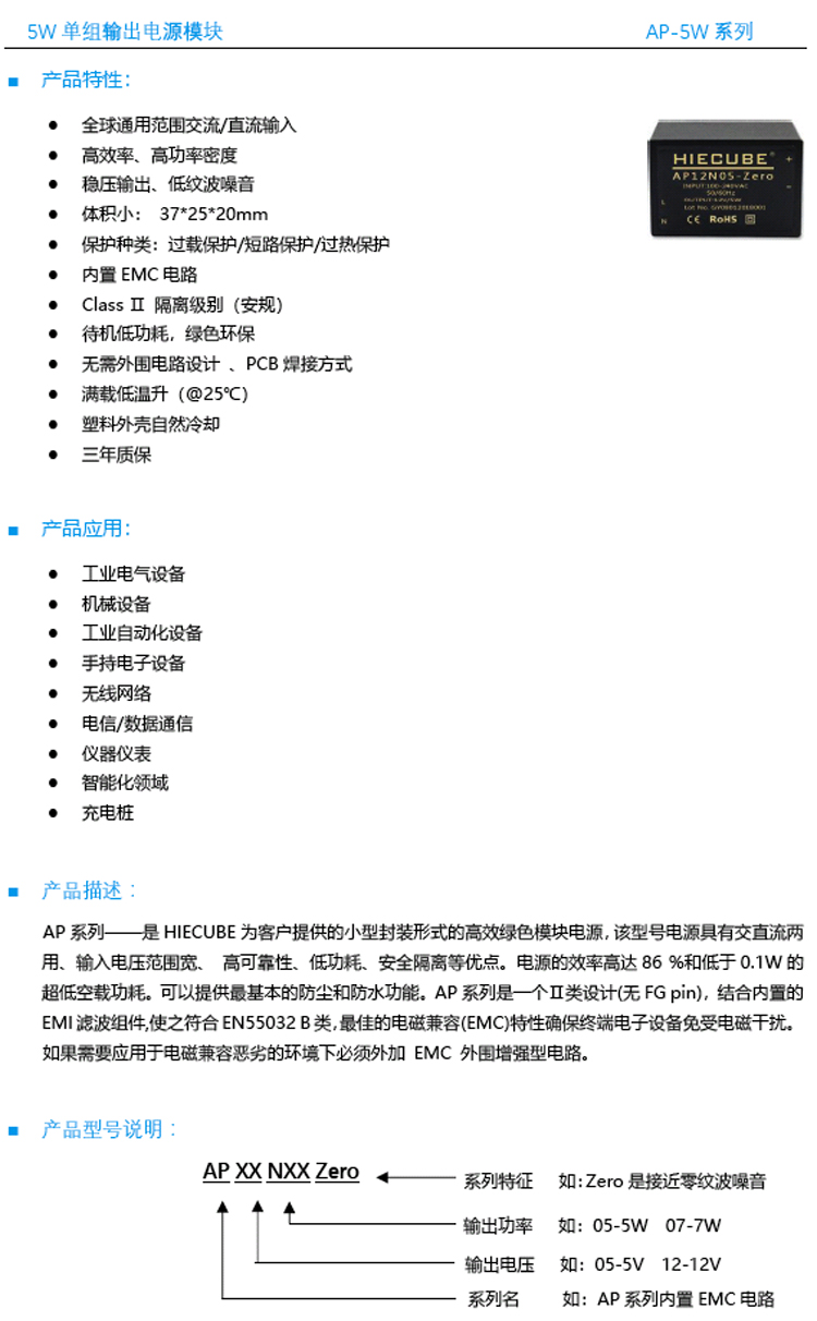 AP-5W系列 單組輸出電源模塊