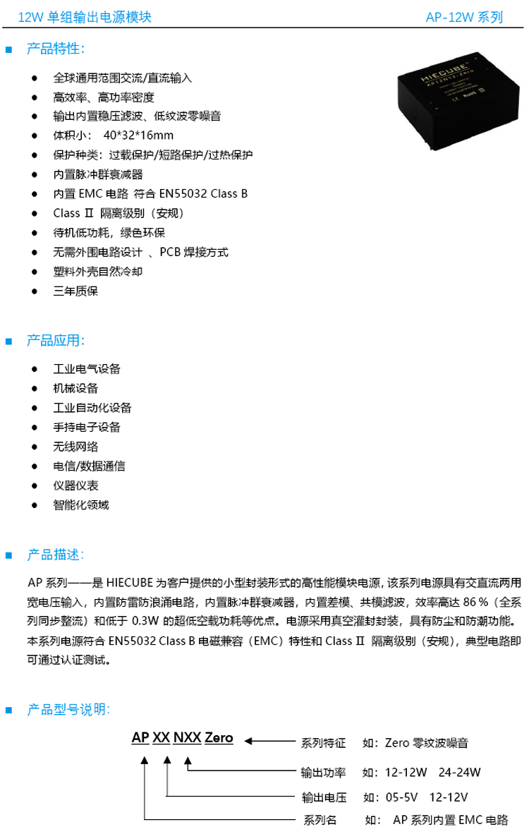 AP-12W系列 單組輸出電源模塊